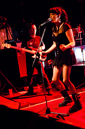 Ipak, ono što bendu daje neku prepoznatiljivu, ili bolje reći "zapamtljivu" notu je pjevačica. Žena, obućena u kratku crnu haljinicu ima sudeći po licu sigurno barem 55 godina, ali po stasu i plesanju ne bi joj dali više od 30. Ima totalno netipično duboki glas, te pjeva odlično, izgovjetno i sa "filingom". Bez njenog pjevanja i plesanja bi na stageu gledali tri statična tipa pred zanimljivom projekcijom, dok uz nju bend zbilja oživi.