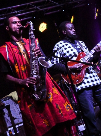 Uz njih tu su bili još i saksofonist i gitarist koji je pored njih stršio kao crna ovca. Ne zato jer je crne boje kože, (svi su crnci) nego zato jer je bio obučen u crne traperice i crno-bijelu košulju. Ostatak sastava sa Cheikhom bio je kompletno obučen u šarene boje. Bilo haljine, koje su mi prije izgledale kao neke narodne nošnje, košulje pune sitnih detalja a svaki u svojoj boji pa čak i cipele sa barem desetak uzoraka boja kože.