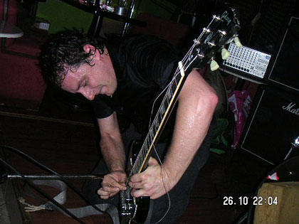 A onda su se oni popeli na scenu. I svi su pošizili. Dvojac je valjao fore na sve strane, ljudi u prvim redovima su skakali pogo, padali po gitaristi, pa se gitarist, u par navrata, penjao po stolovima i pokušavao gitarom srušiti zvučnik i rasvjetno tijelo sa stropa, a ljudi iz publike su mu držali mikrofon da može nesmetano nastaviti pjevati... Bubnjar mora da ima nekog opakog kiropraktičara kad može u sagnutom položaju bez stolice svirati bubnjeve, i još uz to pjevati i skakati. Uglavnom 45 minuta najprljavijeg, sirovog i opako dobrog garage punk trash rock'n'rolla.