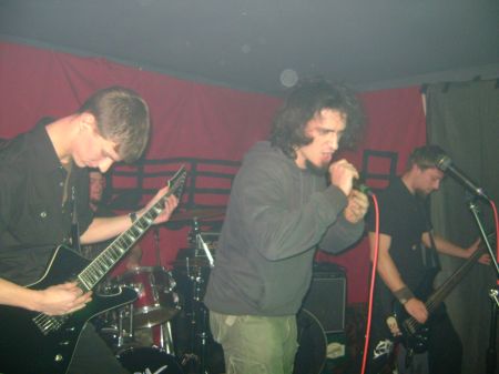 DEATH ECLIPSE iz Novske, black metal četverac predvođen opakim vokalom frontmena Dominika Kutleše. Stilski su također vrlo jednostavni i bazirani na stari black iz 80-ih koji pokazuje sklonosti ka minimalističkim melodijama otprilike kao da ste The Cure prebacili s 33 na 45 okretaja, dodali sirove distorzije i Smithov vokal zamijenili puno dubljim i prodornijim. Imaju i nekoliko odličnih pjesama, a ja bih izdvojio "Inscribed in destiny" i ponajbolju "Without possibillity" s tremolom i jako dobrim gitarskim radom koja im može postati i svojevrstan hit. Bili su pozvani i na bis, pa su još jednom otprašili "Chained in misery".