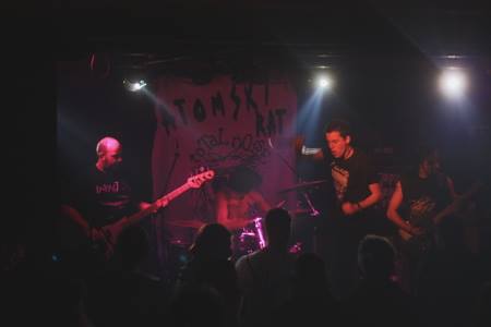 Atomski Rat. Maloprije spomenuta hladnoratovska tematika prožima se i kroz ovaj bend, što je jasno iz njihovog imena. Kod njih je efekt bio sasvim suprotan nego kod Kala, što će reći: ono što sam čuo na bandcampu me se nije sad neznam kako dojmilo, pošto nisam baš preveliki ljubitelju noisea a i produkcija je dosta loša, ali uživo je bila sasvim druga priča. Opet se pokazalo da je najbolje imati mala očekivanja, jer se onda možeš samo ugodno iznenaditi. Atomski je Rat, ukratko rečeno, uništio Attack. Sve je započelo kako i priliči, prodornim krikom praćenim totalnom bukom kako i piše na banneru iza benda. Šiđani (se tak kaže?) su pogodili točno onaj sweet spot između hardcore punka, thrasha i noisea, ne ostavljajući mjesta za ravnodušnost. Neprestani kaos u zvučnicima i u publici djelovao je kao baražna paljba na svako osjetilo, dajući tako pravo da nose to ime. Atomski Rat je zvučao baš kao atomski rat. Ali od ovog nitko ne umire niti dobiva abominalne disfiguracije po tijelu. U najgorem slučaju koja modrica. Muzički, za svakog se tu našlo ponešto. Na jednoj mi je stvari iz nekog razloga pao na pamet izraz pogo grind, jer je imala baš taj tupa-tupa ritam ali s brutalnijom distorzijom i vokalom. Druga je pak stvar bila čistokrvni Oi!, tako da je ono Oi u "total nOise" došlo u prvi plan. Ostatak je seta bio standardni skandinavski sirovi hardcore punk s crossover/thrash twistom. Tematski gledano, njihovi projektili imaju politički naboj, ali ne toliko u moralizatorsko/aktivističkom smislu, nego više prema nihilizmu i posvemašnjom očaju. Svirali su dosta dugo, i to ne kažem zato jer je bilo dosadno nego su imali još bar četiri-pet obrada na bisu, sve redom finska/švedska škola, dakle Mob 47, Terveet Kädet, Kaaos itd. Na kraju njihovog nastupa čitav je klub izgledao otprilike kao ove kreature na njihovim coverima. To je znak da je ovaj bend bio pun pogodak i izgledno je da neće proći dugo kad će opet stići u svima omiljenu jazbinu pod Westinom.