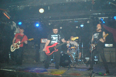 Catholic Guilt je, nakon omanje pauze u kojoj se jedva stiglo nabrojati dvadesetak riječi na "B", zauzeo pozornicu. To su nam stari znanci, Doomtownovi puleni koji svako toliko navrate u Mediku. Mislim da im je ovo bio četvrti put. Vama možda to neće ništa predstavljati, ali mene je eto malo razveselilo to što se zovu Catholic Guilt i zadnji put su nam došli oko Božića, a sad oko Uskrsa. Kao "Catholic" i to, kužite? He he he. Doooobro... Bend je jeben, nema se tu puno što za reći više. Rekla mi je Dunja poslije da su bili dosadni, pa sam se malo zgrozio. Jer sam mislio da vlada opći konsenzus da su jebeni. Ja stoijm pri tome, u svakom slučaju. Njihov je hardcore punk sasvim očito na tragu HC punka osamdesetih, ali s taman dovoljno modernih aranžmanskih zahvata da zvuči sasim specifično i prepoznatljivo, daleko od puste kopije Poison Idea ili tako nekog. Bajdvej, hvala basistu što je obukao Youth Avoiders majicu i na taj način me podsjetio na postojanje tog izvrsnog benda. Inače, ova su tri mladića nedavno izdala EP imena Cabin Fever pa su to iskoristili kao povod za opsežnu europsku turneju s američkim drugovima (ovi su njih vodili po Americi prošle godine, a ruka uvijek ruku mije). Tako da su, jasna stvar, odsvirali sve stvari s tog EP-a, i još pet-šest ostalih, također sve skupa ne više od pola sata. No, kako su se u tih svojih pola sata pokazali kao još nabrijaniji, energičniji i zanimljiviji bend od svojih prethodnika, zaslužili su tu čast da ih svi zovemo na bis i svi ga ostanemo poslušati! Tu je pala obrada Hüsker Dü, tako da su se neki i raspjevali, čudnog li čuda. Poanta priče je ta da Catholic Guilt svakim novim nastupom u našoj metropoli ostavlja dojam sve boljeg benda i da se već sad radujem sljedećem nastupu koji, ako već neće biti na Tijelovo, onda nek padne tamo negdje oko Svih Svetih.
