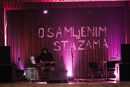 Događaj zamišljen kao nešto između glazbene i poetske večeri odvio se i u lijepo ukrašenom prostoru, inače domu kulture. Stolovi od paleta pokriveni novinama te slamnate stolice za terasu taman postavljene toliko da se svako mjesto napuni. Neka je bila 50-ak ljudi, da je bilo više, trebali bi stajati i izgubila bi se komorna i pomalo kazališna atmosfera.