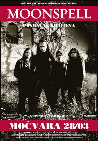 Moonspell. Prije dvije godine Moonspell su u Močvari održali odličan koncert koji je po mnogima jedan od najveličanstvenijih metal koncerata ikada održanih u tom prostoru. Predvođeni karizmatičnim Fernandom Ribeirom vraćaju se u Zagreb promovirati svoj novi album ''Memorial''. Moonspell dolaze u naponu snage. Osvojili su MTV Europe Music Award u kategoriji najboljeg portugalskog benda i jedini su metal bend, uz Metallicu i Iron Maiden, koji je u Portugalu dohvatio vrh glazbene top liste.