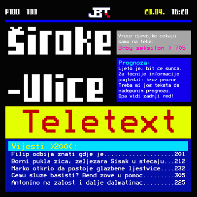 Pjesma "Teletext" naći će se i na predstojećem drugom albumu Širokih Ulica, a za nju frontmen benda, tekstopisac i gitarist Borna Ocvirk kaže:
